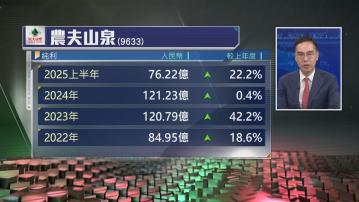 【Now財經台】農夫山泉(09633)上半年收入升15.6%,純利升22.2%。