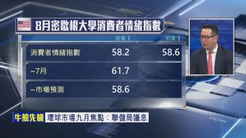 【Now財經台】本周將會公布非農就業數據,上周五(8月29日)公布的核心通脹升至5個月高位,國內消費開支升幅是4個月來最大,不過8月美國消費信心指數跌至3個月最低,通脹是否影響消費者信心?9月減息的機會大嗎?若落實減息,對美股及港股表現有甚麼影響?