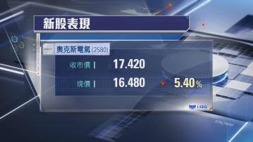 奧克斯電氣股價全日潛水,收報16.48元,較招股價17.42元,低逾5%,未計手續費,每手帳面蝕188元。