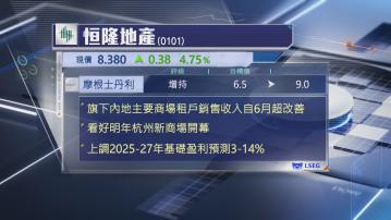 【Now財經台】摩根士丹利大幅上調恒隆地產(00101)目標價38%,由6.5元調高至9元,維持「增持」評級。