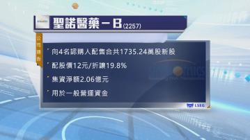 【Now財經台】聖諾醫藥(02257)折讓近20%配股,集資約2億元。