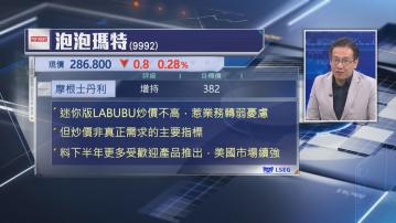 佢續指,睇返泡泡瑪特自身因素,市場喺集團出業績及推出新產品前,已經做咗相關預測,而呢啲因素已提前反映喺股價上,而股份「染藍」後,大批資金部署沽空,令股價產生短期沽壓,呢種情況其實係正常,集團整體基本面冇太大改變。