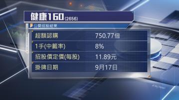 集團公開招股超額認購近751倍,申請1手,即250股,中籤率僅8%,要認購1600手,即40萬股,才可穩獲1手,健康160今次上市集資淨額約3.2億元。