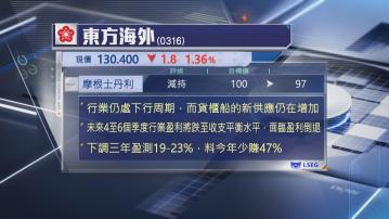 該行又估計,貨櫃航運現貨運價未來跌幅或超預期,因此,下調東方海外今年至2027年盈利預測逾20%,估計今年純利按年大跌47%,明年及後年則分別跌40%和23%。