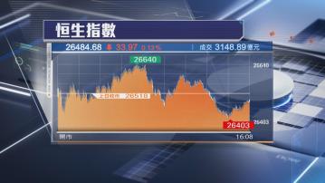 恒生指數今日(25日)輕微高開後,走勢反覆,最多升121點,高見26640點,午後掉頭向下,收市跌33點,報26484點。大市全日成交增至逾3148億元。