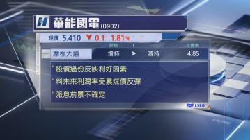 摩通指,華能股價今年累升近30%,跑贏同業,主要受惠於火電業務利潤率勝預期,不過,該行認為,華能股價已過度反映基本面利好因素,並憂慮煤價已自6月低位反彈逾10%,將影響利潤率表現。