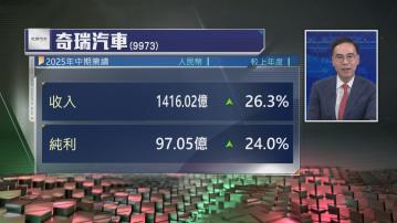 【Now財經台】奇瑞汽車(09973)上半年收入增加26.3%,純利升24%。