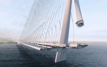 淡水夕照是許多台北人的共同回憶,也是跨越淡水河口的淡江大橋在設計上的難題。淡江大橋總長920公尺、主橋塔高211公尺、主跨距450公尺,完工後將會是全世界最大的單塔不對稱斜張橋。