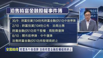 【Now財經台】時富金融(00510)上星期指,大股東時富投資(01049)旗下CIGL正跟一名獨立第三方,就出售時富金融若干股權嘅潛在交易進行磋商,不過,時富金融今日(8日)中午公布,指有關磋商已終止咗,兩隻股份下晝復牌一度急瀉52%及逾32%,成件事只係經歷咗5個交易日,通告冇提及任何細節,點分析極速撻Q嘅原因?