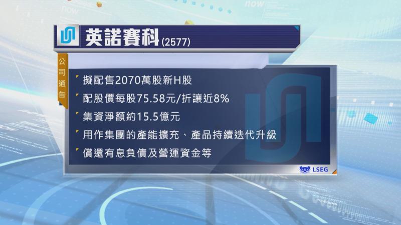 【Now財經台】英諾賽科(02577)計劃配股集資逾15億元。
