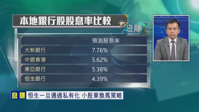 【Now財經台】滙豐控股(00005)上周突然宣布,計劃動用過千億私有化恒生銀行(00011),滙控管理層強調,私有化係一個審慎嘅商業決定,同恒生嘅不良貸款冇關,呢個重磅消息引起市場熱烈討論,若成功私有化,恒生將會撤銷上市地位,原本揸住恒生收息嘅小股東,可能要搵另一啲收息股代替恒生,應該揀邊隻?