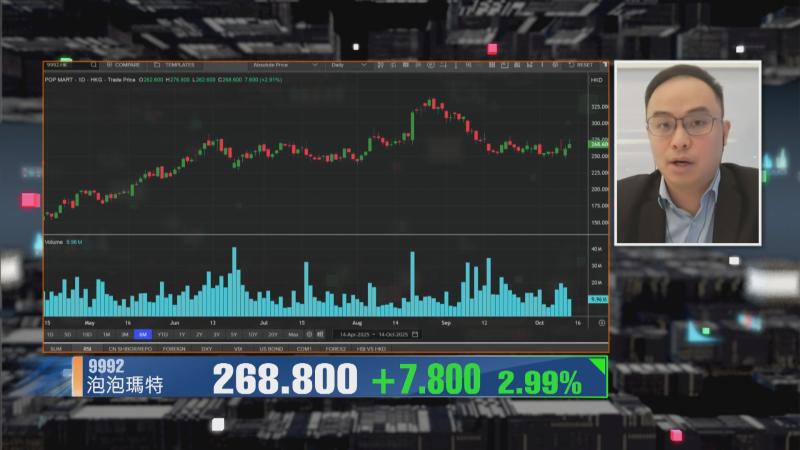 富途證券首席分析師譚智樂指,蜜雪及布魯可發力追上嚟,未必等於值博率最高,投資者應睇基本面及圖表,過去兩日蜜雪及布魯可相對升得較多,泡泡瑪特值博率變相較低,但現階段順勢博泡泡瑪特,只要肯坐貨及做中線投資係冇問題,但睇基本面及圖表,其實幾隻都差唔多。