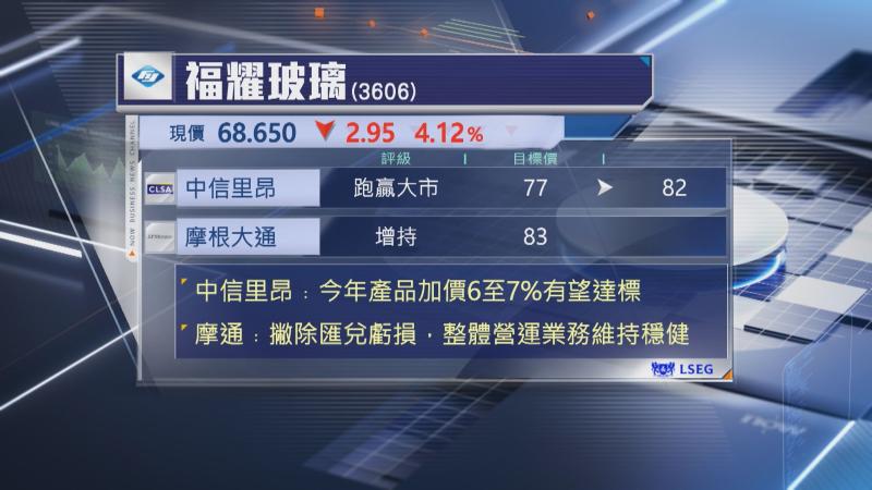 摩根大通則指出,福耀上季錄得1.2億元人民幣匯兌虧損,拖累季績遜預期,若撇除匯兌因素,整體營運業務維持穩健,核心純利按年增長18%,符預期,重申「增持」評級及83元目標價。