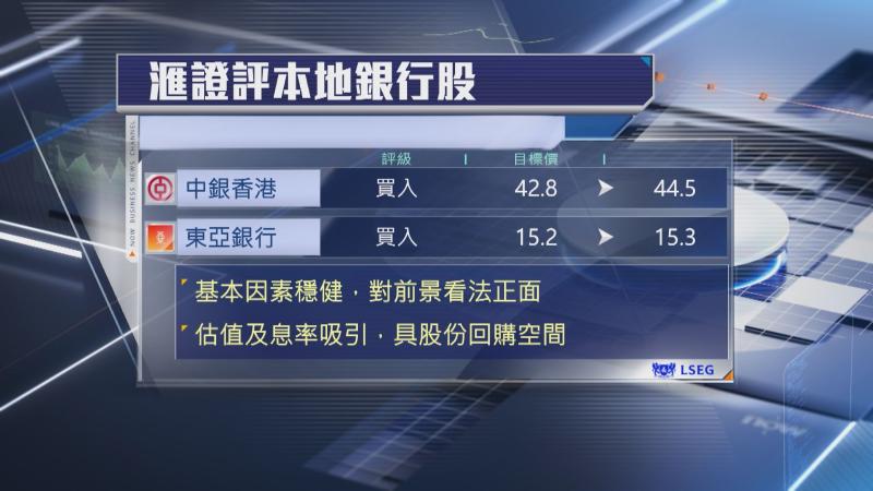 滙證認為,本地銀行股基本因素穩健,銀行同業拆息(HIBOR)反彈,股市交投暢旺,加上南下資金動力持續,對本地銀行股看法轉趨正面,該行看好中銀及東亞捕捉財富管理相關業務能力,又指兩家銀行現水平估值及息率吸引,並有潛在回購空間,有利提升股東回報。