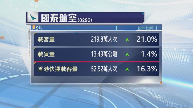 此外,國泰及HK Express 9月合共載客逾270萬人次,按年升20%。