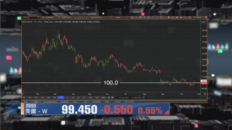 大華繼顯執行董事梁偉源指,外賣行業競爭持續,意味虧損情況唔會咁快有改善,美團第3季營運數據出爐前,股價都好難造好,雖然美團昨日(23日)錄得大成交量,股價收市企喺100元,不過,喺基本因素冇積極改善下,估計美團股價會繼續喺100元上落,直至營運數據有改善,股價先有望回升,所以發點心債對公司營運幫助唔大。