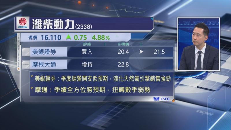 【Now財經台】濰柴動力(02338)公布第3季收入574億元,升16%,純利32億元,多賺29%,雖然毛利率按年及按季都跌0.7個百分點,但整體業績好過預期。濰柴動力今日(31日)股價高開2%後,升幅迅速擴大,早段一度升逾7%,見1個月高位。不過,濰柴動力毛利率已連續幾季下跌,為何市場似乎毫不擔心?
