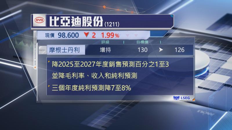 【Now財經台】摩根士丹利降比亞迪股份(01211)盈利預測和目標價。