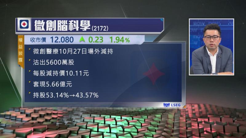 【港股今日睇】大股東大手減持 微創腦科學捱沽?