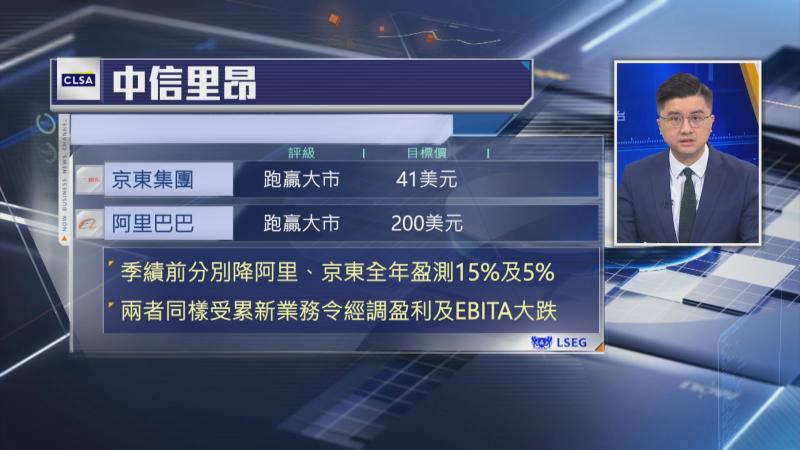 【Now財經台】阿里巴巴(09988)及京東集團(09618)預計將會在11月公布季績,中信里昂在季績前下調兩間公司全年盈利預測,但未有調整目標與評級。