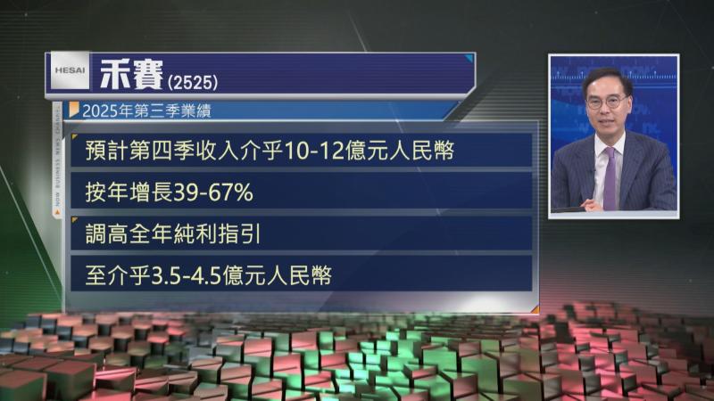 【Now財經台】禾賽(02525)第三季扭虧為盈,賺2.56億元人民幣,並上調全年盈利指引。