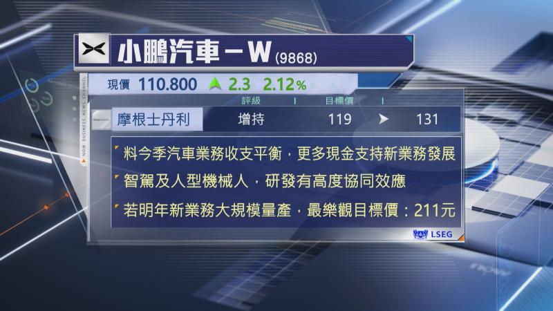 大摩上調小鵬目標價至131元,維持「增持」評級,若新業務明年可大規模量產,在最樂觀的情況下,目標價可高達211元。