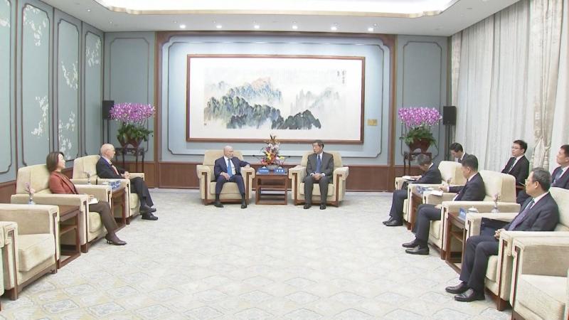 【Now財經台】國務院副總理何立峰在北京跟美中關係全國委員會(NCUSCR)執行副主席格林伯格(Evan Greenberg)及會長歐倫斯(Stephen Orlins)會面。