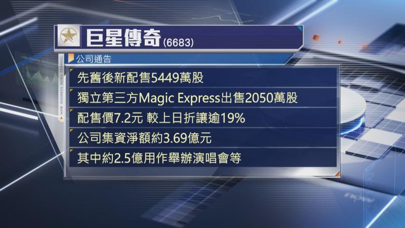 【Now財經台】巨星傳奇(06683)擬折讓20%配股集資。