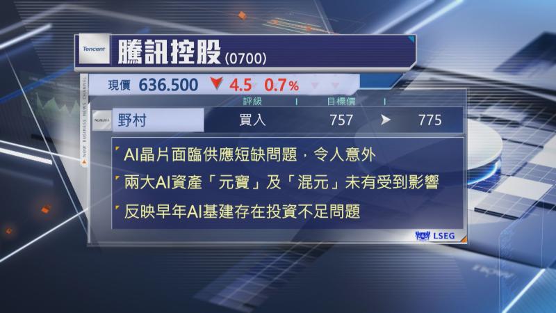 雖然管理層表示,現時兩大核心AI資產「元寶」及「混元大模型」,未受晶片短缺問題影響,但野村相信,若問題未能解決,有可能阻礙騰訊雲業務未來發展,並反映集團早年在AI基建方面,相對於阿里巴巴(09988)及字節跳動(ByteDance)存在投資不足的問題。