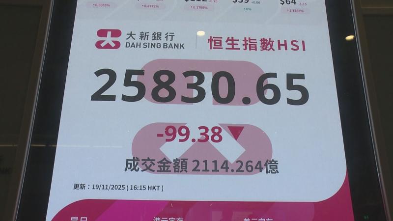 大市今日(19日)輕微高開後,最多升115點,高見26045點,但升勢未能持續,午後掉頭向下,收市跌99點,報25830點。大市全日成交縮減至逾2114億元。