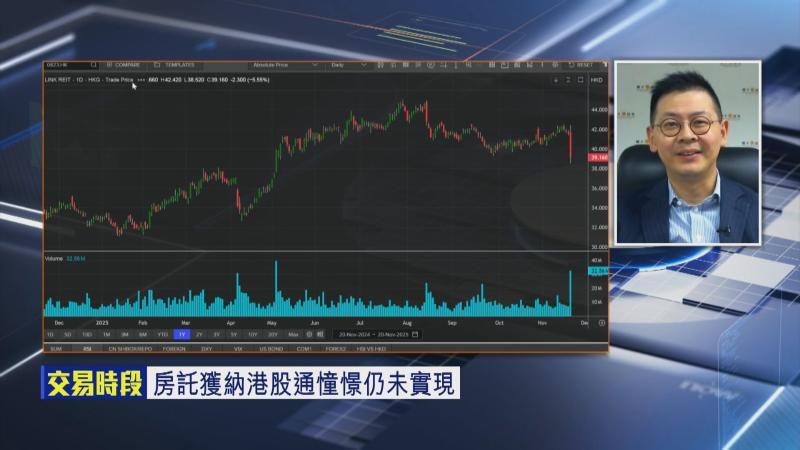 【Now財經台】領展房產基金(00823)今日(20日)中午放榜,中期業績表現麻麻,中期可分派總額及每基金單位分派都跌逾5%,收入及物業收入淨額都要跌,拖累股價午後一度大跌7.7%,低見38.52元。不過,公司傳嚟一個正面消息,市傳領展會納入港股通,會唔會成為一個轉捩點?