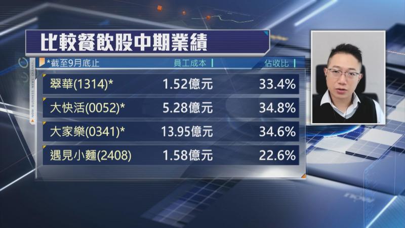 【Now財經台】翠華控股(01314)、大家樂(00341)及大快活(00052)已先後派咗中期成績表。此外,中式麵店遇見小麵(02408)今日(27日)開始招股。呢3份成績表都受薪酬開支影響,依家本地餐飲企業員工成本普遍佔整體開支逾30%,呢個問題係咪好難解決?