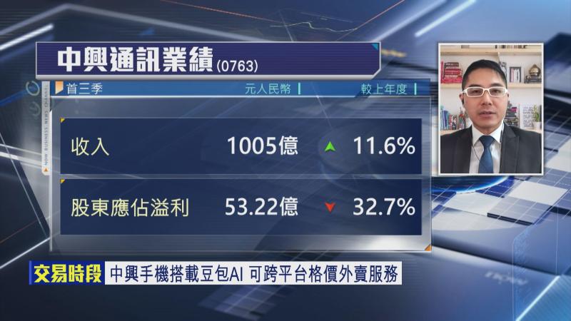 聶Sir續稱,呢啲利好消息帶動,一定對中興有憧憬,事實上,股價喺11月底已逐步回升,估計今個月有機會升至39元水平,但要升穿40元,就要有更多利好消息先可以成事。