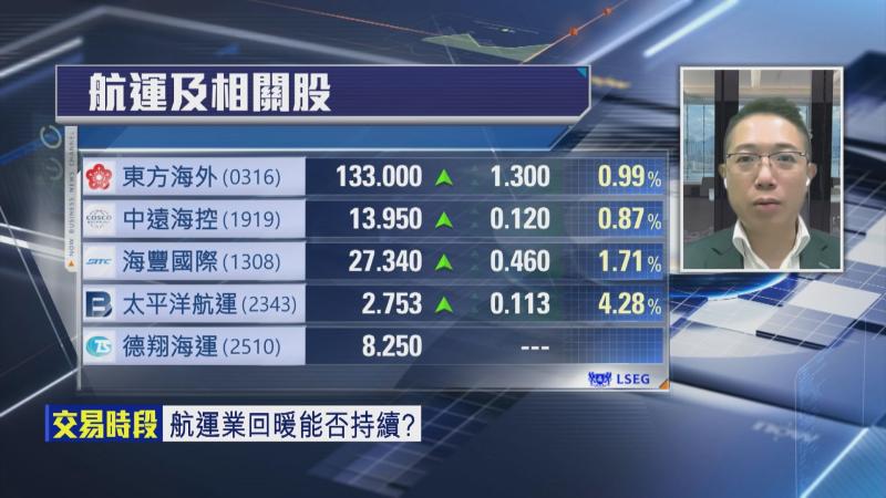 【Now財經台】波羅的海乾散貨指數(BDI)連升15日,已升至2年高位,更帶動唔少航運股造好,其中,太平洋航運(02343)股價今日(4日)一度升6%,高見2.8元,點睇運價前景?想揀航運股又應該點揀好?