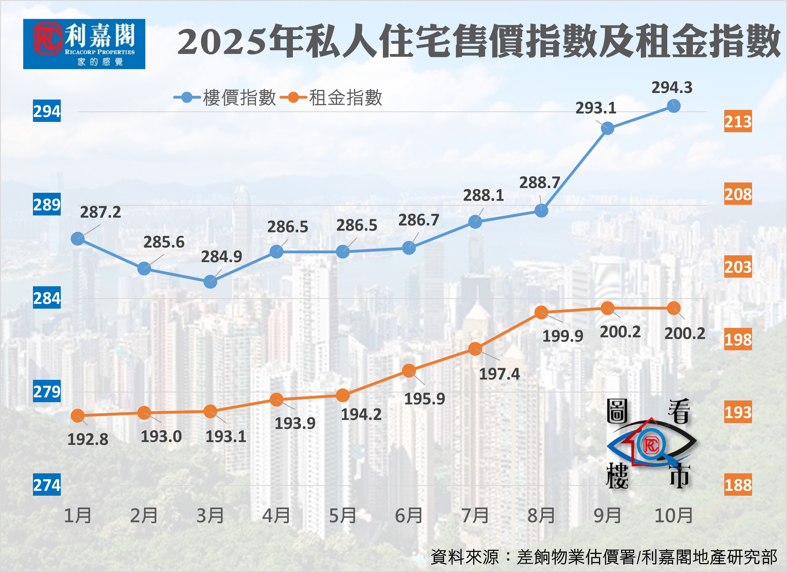 另一方面,差餉物業估價署數據顯示,10月私人住宅售價指數升至294.3點,按月上升0.41%,實現連續七個月平穩向上,累計升幅達3.3%,並創近15個月新高。今年首十個月樓價累計上升1.76%,與2021年高峰相比,跌幅已收窄至約26%。
