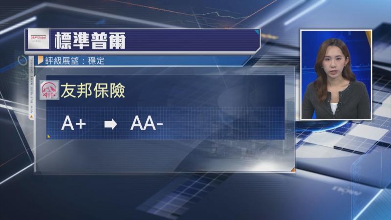【Now財經台】評級機構標準普爾上調友邦保險(01299)評級。
