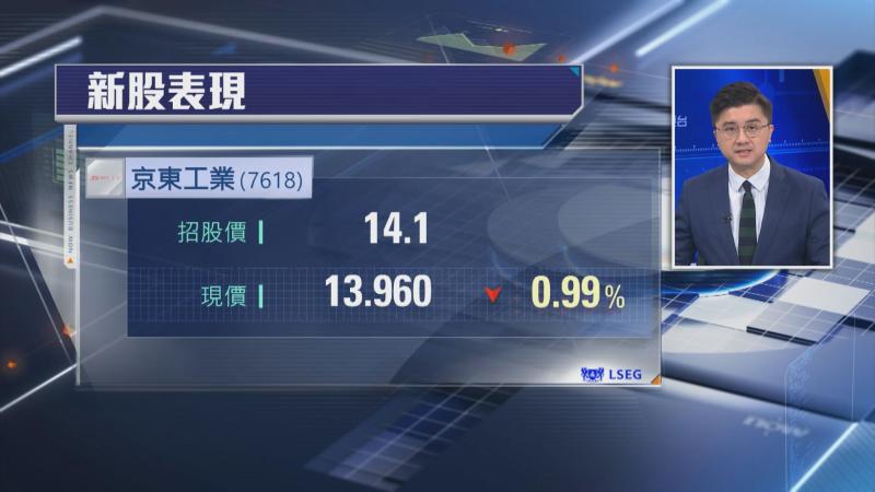 股價方面,京東工業開市報13元,較定價14.1元,低7.8%,其後一度低見12.66元,低逾10%,中午收市報14.09元,輕微低於招股價,半日成交逾3.9億元。