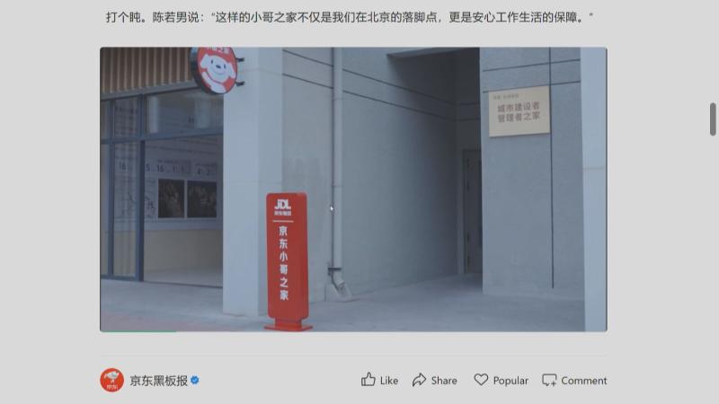 京東表示,會透過租賃、自建、住房保障基金支持等方式,提供15萬套「小哥之家」,改善外賣騎手及快遞員等員工居住條件,預期最少20萬名員工受惠,現時京東為員工提供約2.8萬間住房,覆蓋全國145個城市。