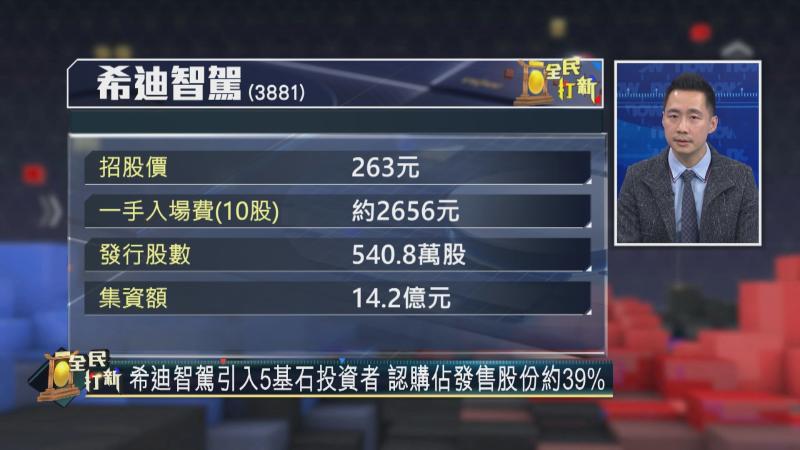 【Now財經台】由「大疆教父」李澤湘創立嘅「獨角獸」希迪智駕(03881)昨日(11日)開始收飛,每手10股,入場費約2657元,發行價263元,集資14.2億元,股份計劃下周五(19日)掛牌,同其他已上市嘅智駕股好唔同,公司專注於為礦山、物流及港口等封閉環境使用嘅自動駕駛卡車、車路協同(V2X)技術及智能感知解決方案嘅研發,喺港股之中算係相當獨特,係咪有吸引力?