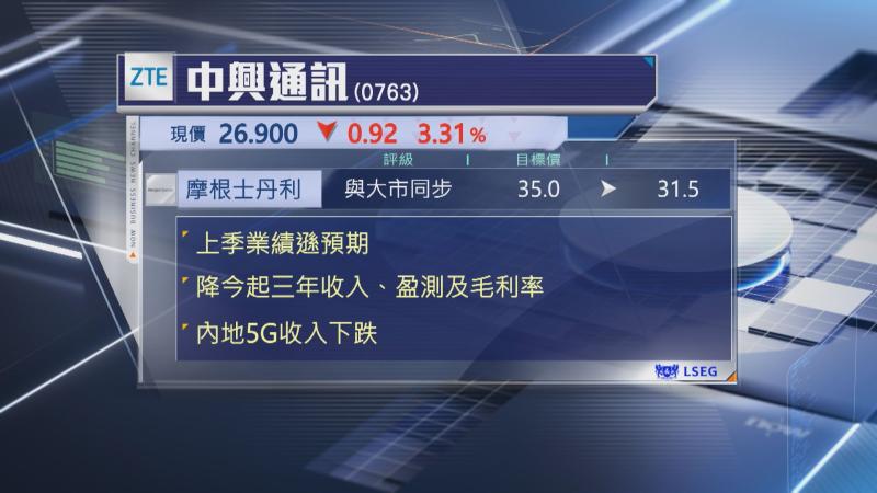【Now財經台】摩根士丹利下調中興通訊(00763)目標價,由35元降至31.5元,維持「與大市同步」評級。