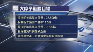 【Now財經台】摩根士丹利表示,恒生指數明年底目標27500點,相當於明年預測市盈率(PE)11.5倍,預期企業每股盈利增長6%,國企指數明年底目標9700點。