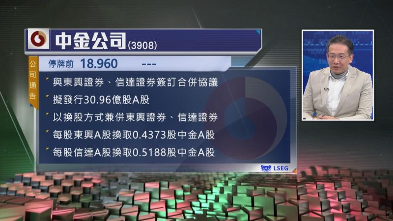 【Now財經台】中金公司(03908)落實以換股方式,併購東興證券及信達證券,交易規模逾千億元人民幣。