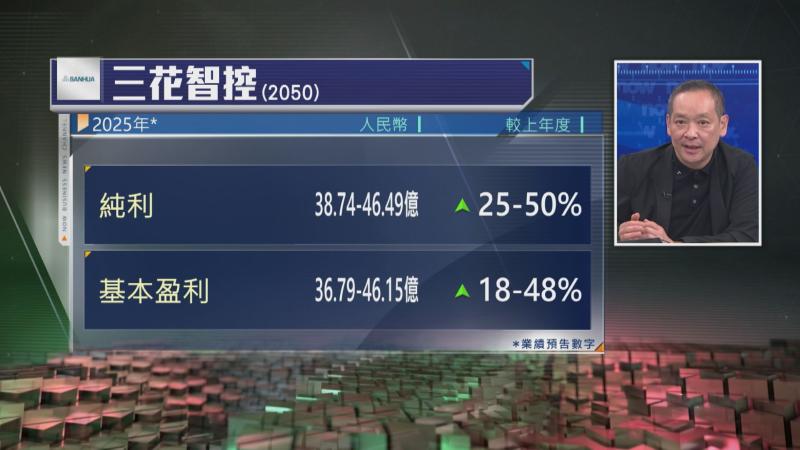 【Now財經台】三花智控(02050)預計,全年純利增長25-50%。
