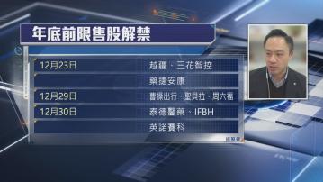 【Now財經台】今年港股首次公開招股(IPO)集資額重奪全球No.1,今年已經有逾百家公司上市,另一方面,過去兩個月,港股迎來限售股解禁高峰,上月有今年新股集資王寧德時代(03750)率先解禁,臨近聖誕至年底有最少9家公司嘅現有股東、上市前投資者或基石投資者嘅禁售股解禁,包括曹操出行(02643)、周六福(06168)及IFBH(06603)等,點評估呢啲股份解禁後走勢?