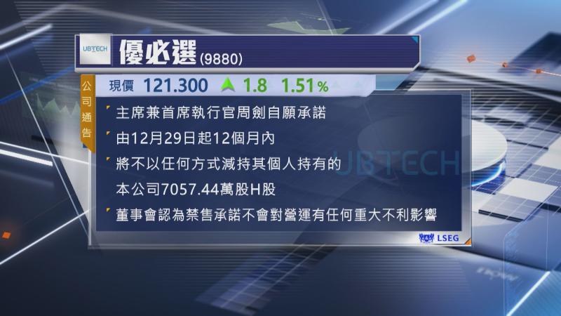 【Now財經台】優必選(09880)主席承諾1年內不減持,集團股價今日(30日)一度升7.6%,高見128.6元。