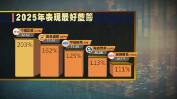 此外,恒指成分股於2025年增至89隻,當中鋁業股表現突出,中國宏橋(01378)全年累升逾2倍,成藍籌升幅王。