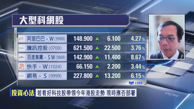 勝利證券首席顧問陳建良認為,恒指今個月頭2至3個星期,應該維持到升勢,主要由喺靠去年第4季表現較差嘅科技股帶動,因為騰訊控股(00700)及阿里巴巴(09988)呢啲重磅股,對拉動指數非常重要,呢啲股份大升,就會推高大市。