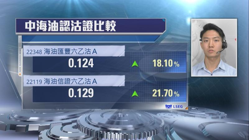 Daniel補充,中海油係傳統高息股,股息率一直維持約6厘,所以亦有投資者用長身CALL做好倉部署,可以留意行使價25元,價外18%,2026年12月到期,實際槓桿約6倍嘅CALL。