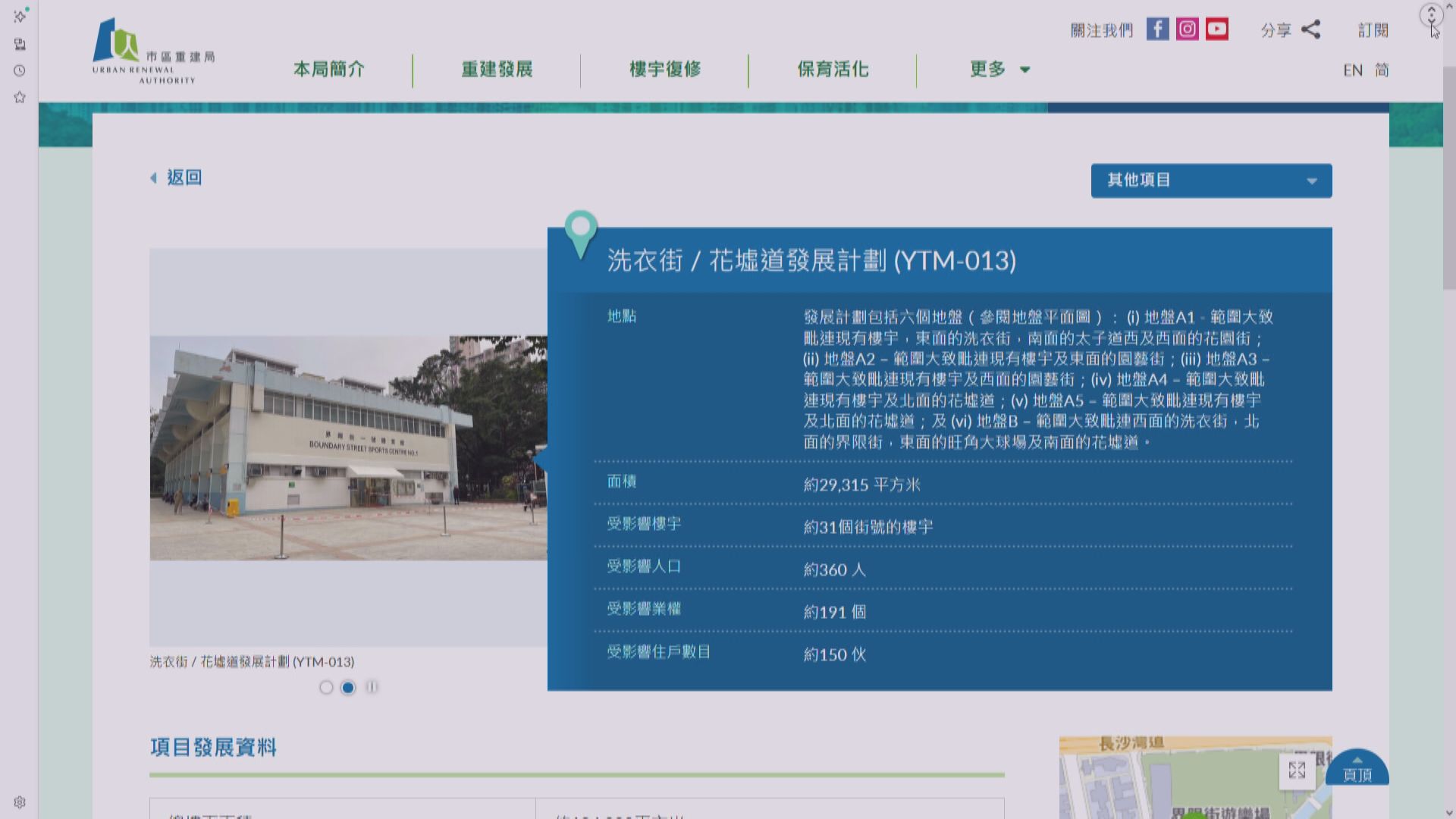 此外,市建局會以項目原址所興建的項目內「樓換樓」單位,作為給予業主現金補償以外的額外選擇,項目涉及191個業權,業主有60日時間考慮。