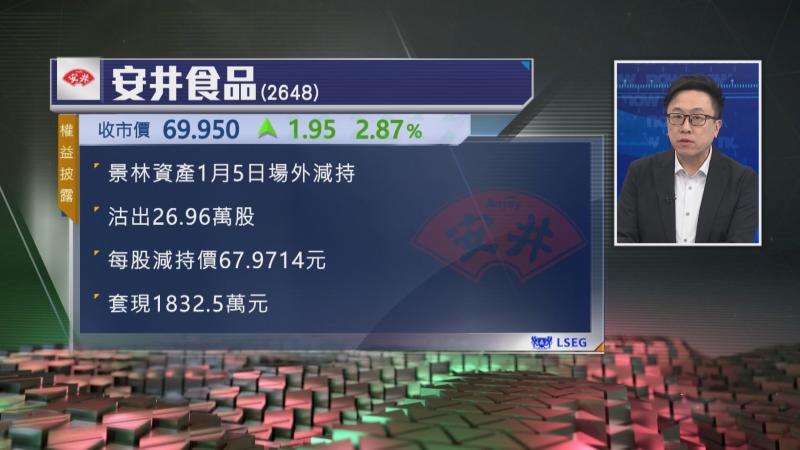 【Now財經台】安井食品(02648)剛過上市半年禁售期,其中一名基石投資者連續兩日減持股份。